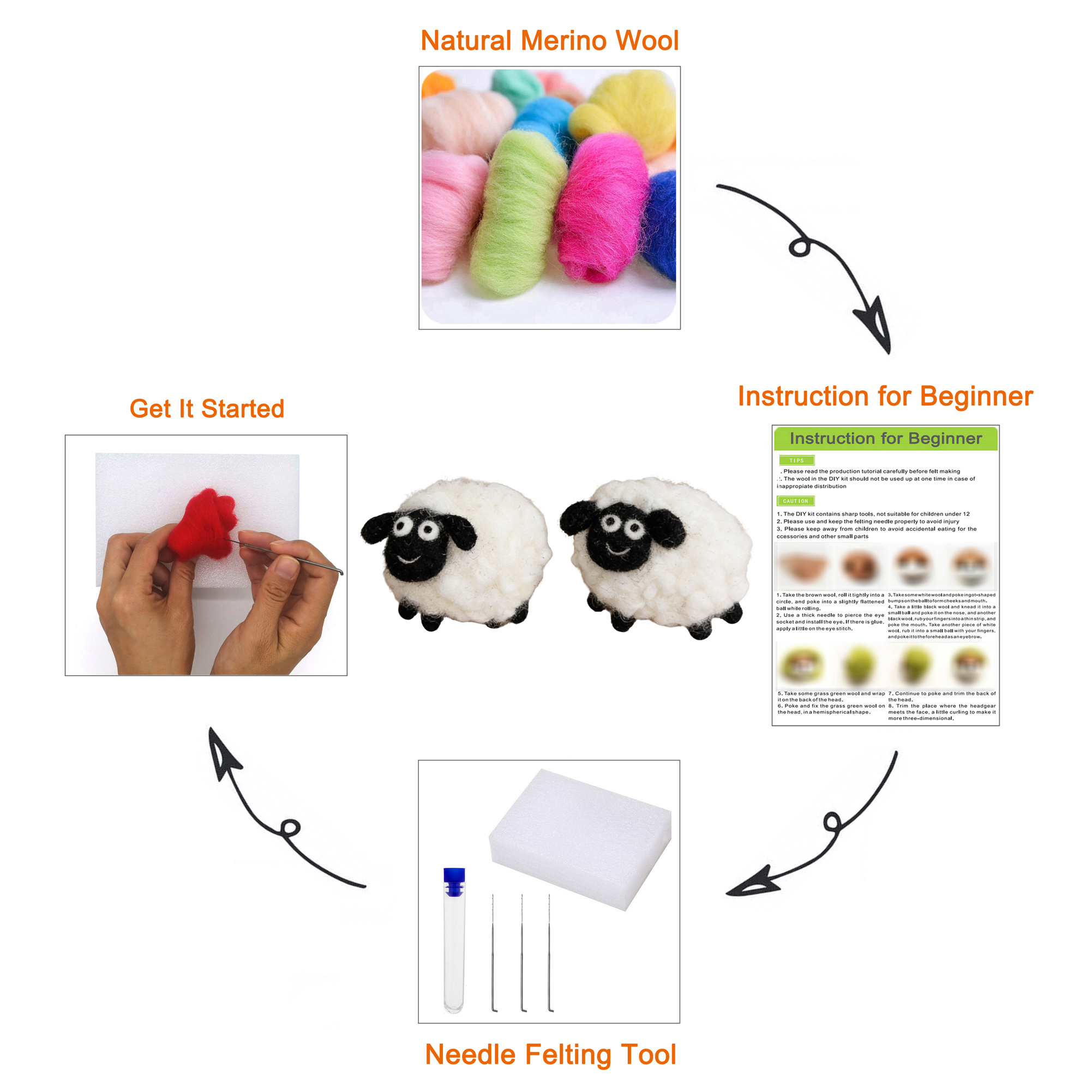 2 Little Lambs Needle Felting Kits Beginners with Instruction Size 2.4inch Easy for Starters DIY Craft Kit Include Everything to Make