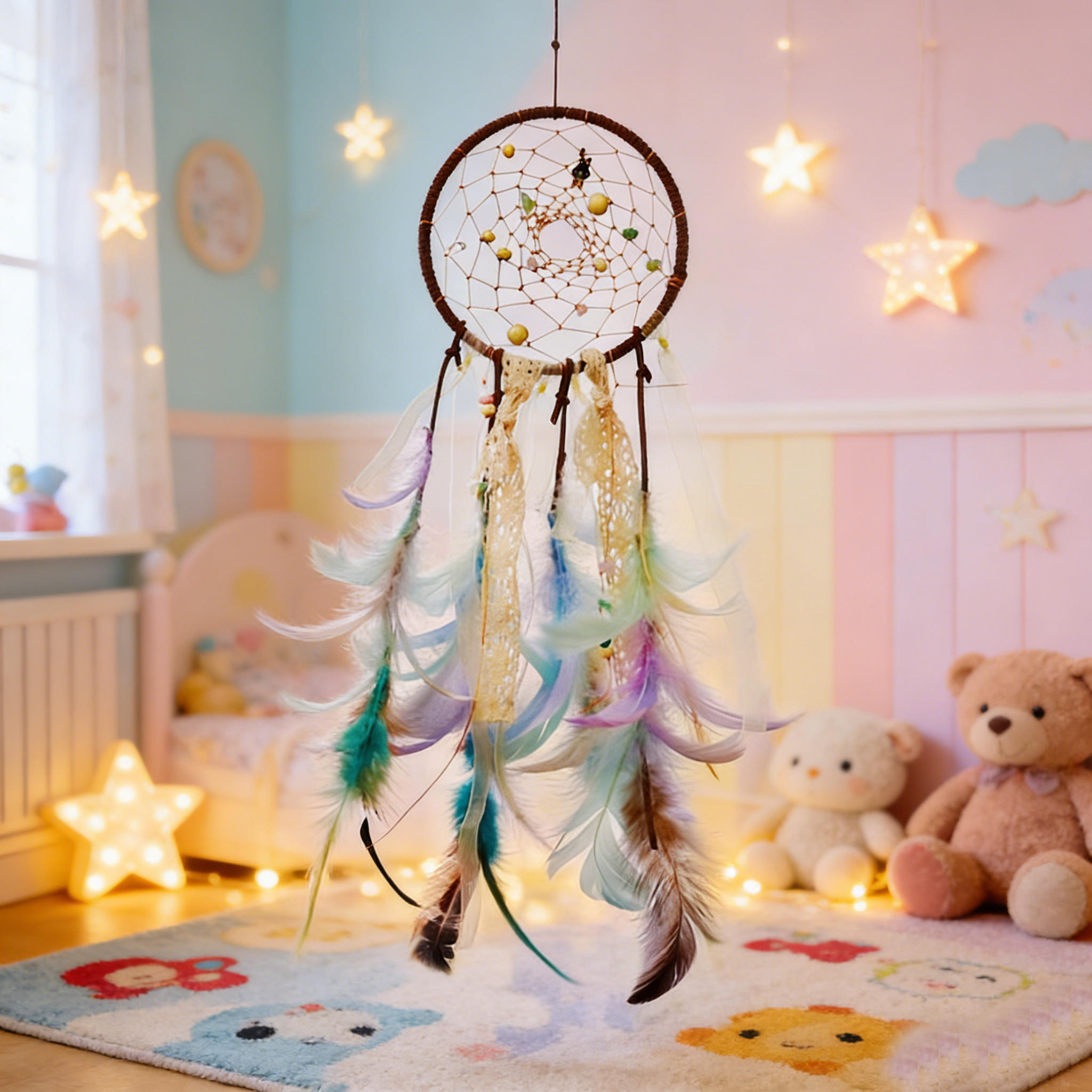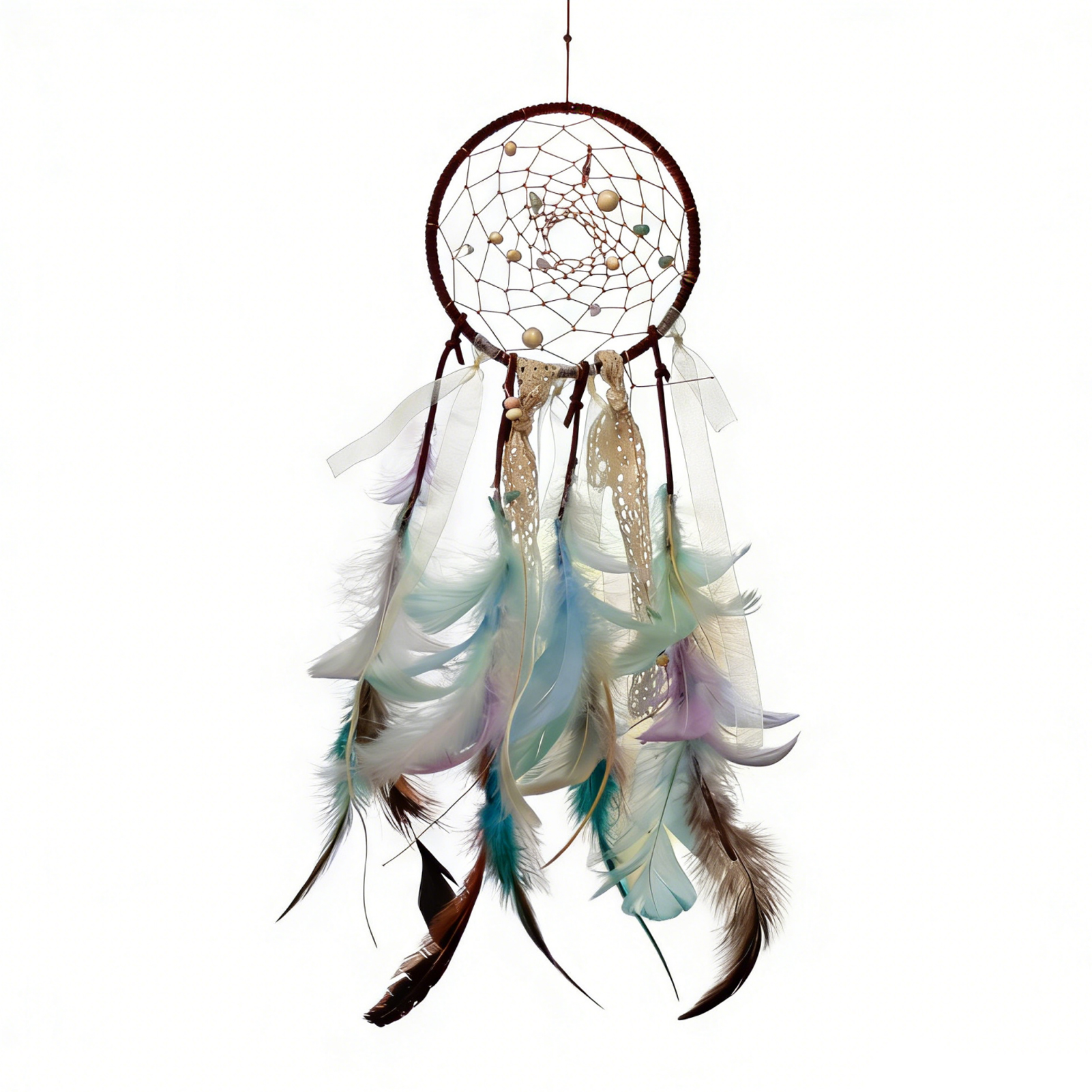The Dreamcatcher is an American Indian tradition to ensure good sleep and pleasant dreams. According to Indian folklore, your dreams are caught in the web – when the first morning light hits the Dreamcatcher, the bad dreams melt away out the web holes and are removed forever. The good dreams travel down the feathers and become part of the dreamer. A stone in the web is a dream enhancer that makes impossible dreams come true!