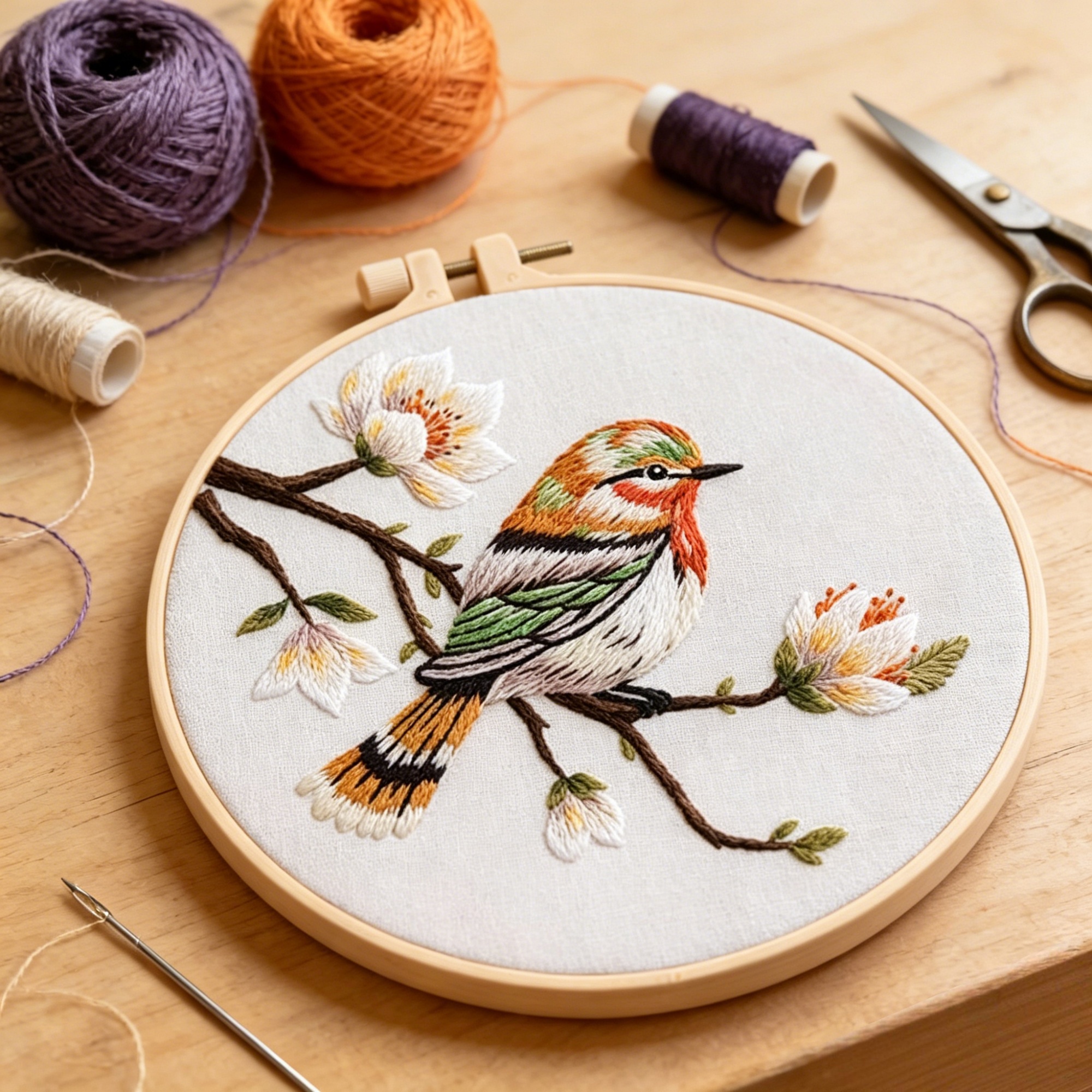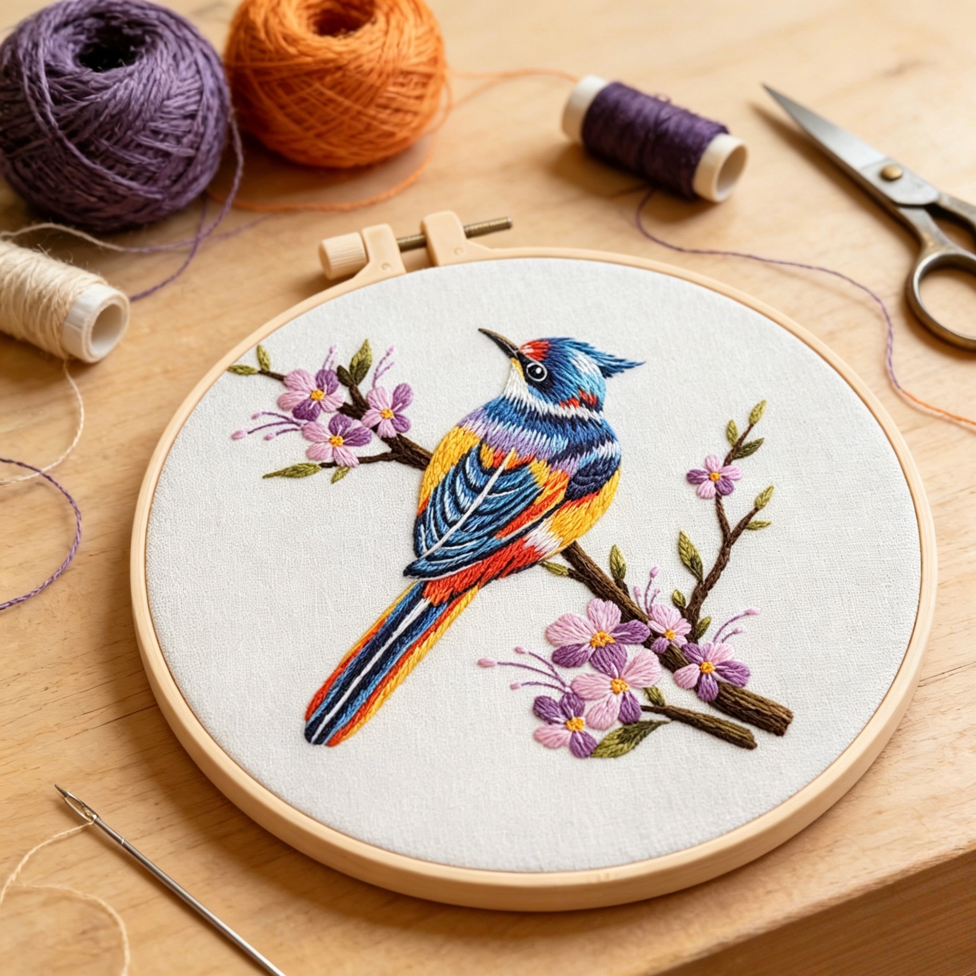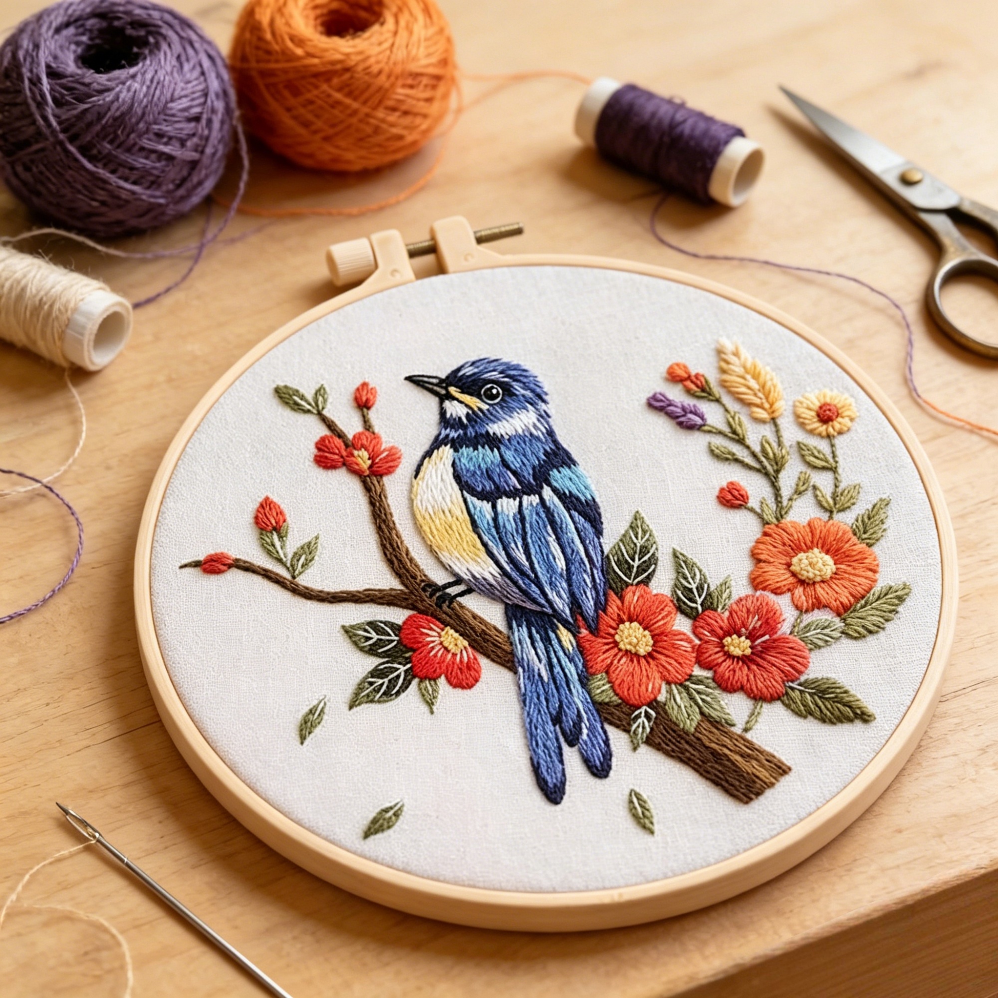 Create your own nature-inspired embroidery artwork with this Bird Embroidery Kit.