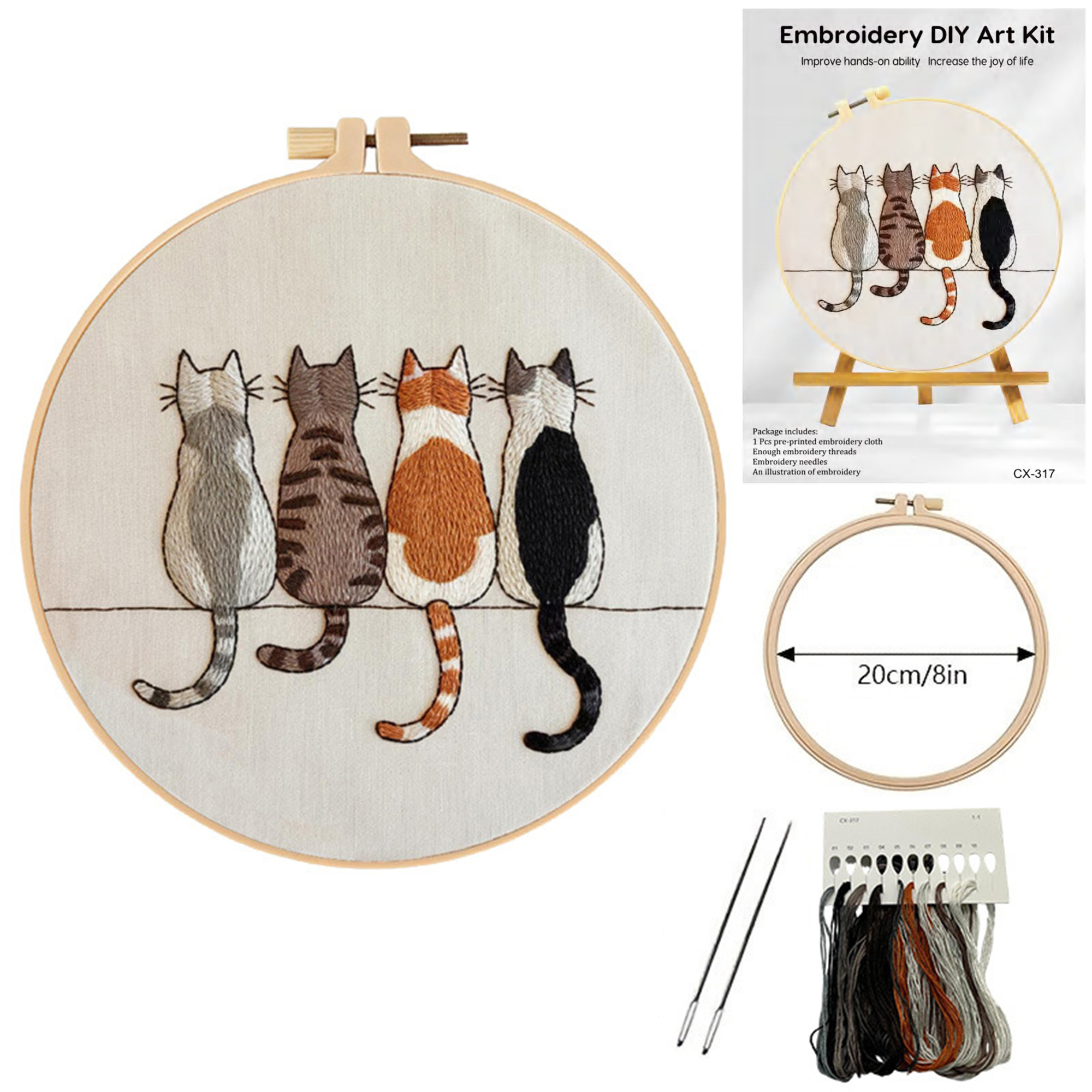 Mini Cat Embroidery Kit for Beginner – Including Everything to Make 8inch Craft Kit for Mom Grandma Girlfriend Birthday Present