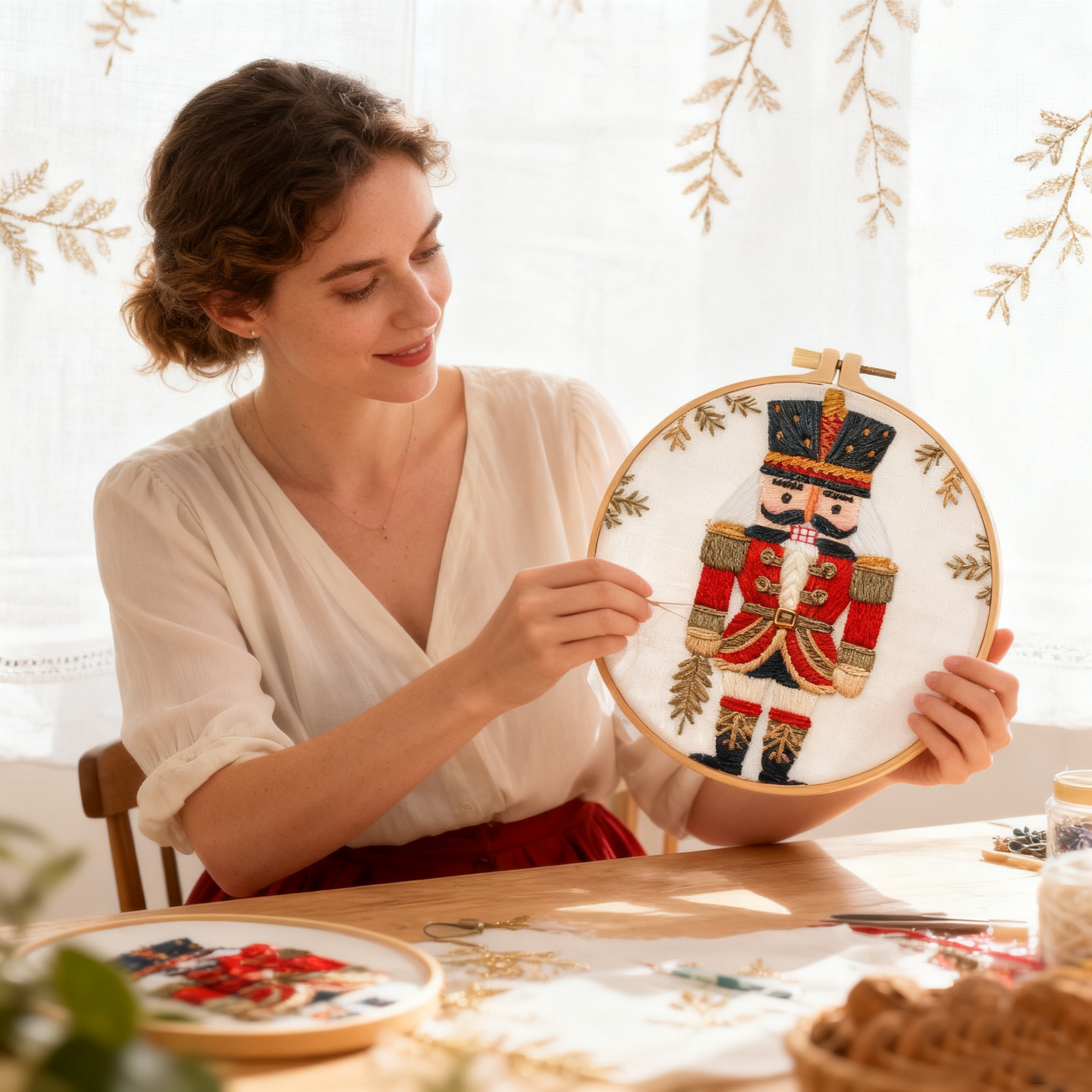 Nutcracker Embroidery Kit for Beginner – Including Everything to Make 8inch Christmas Craft Kit for Mom Grandma Girlfriend Birthday Present