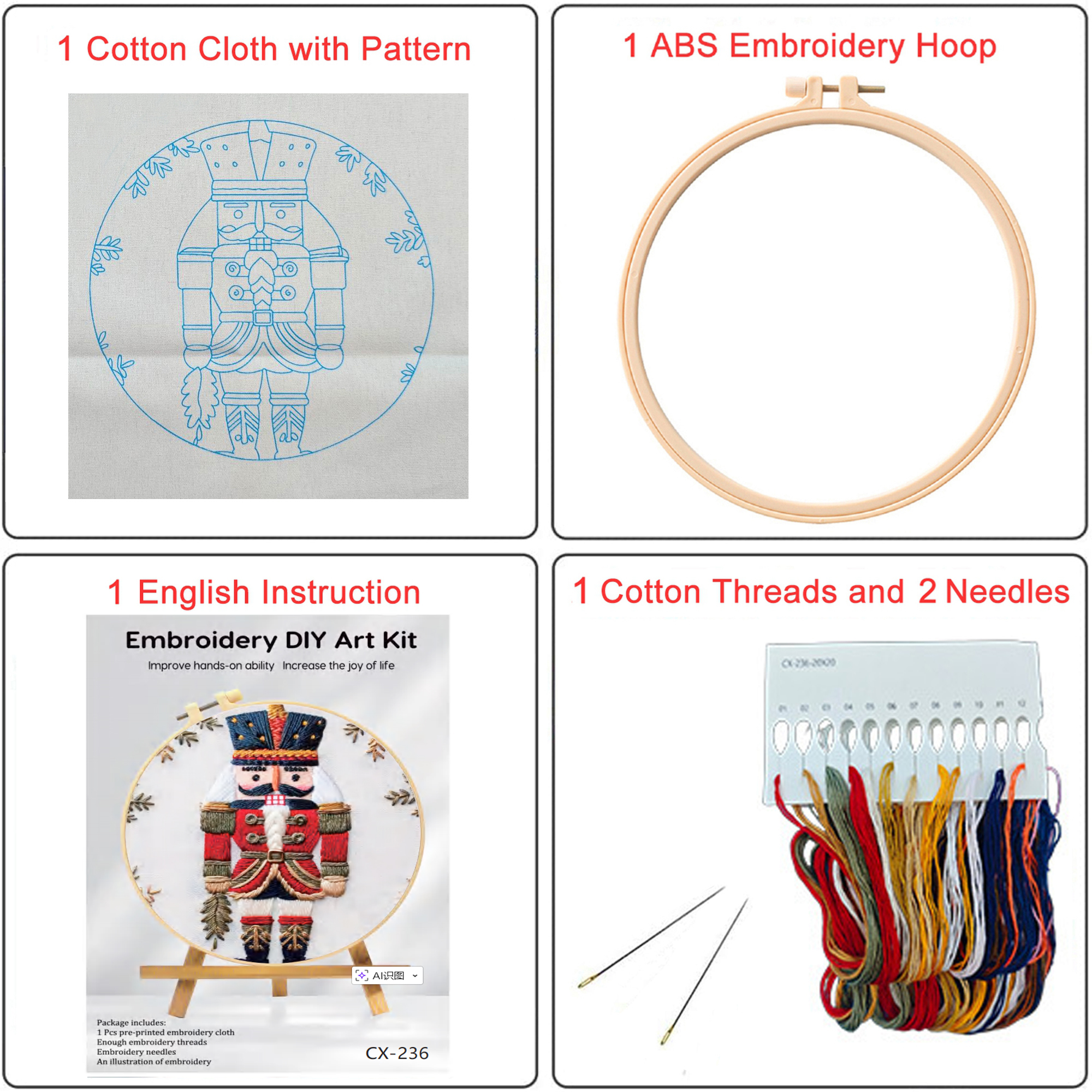 5. There is colored pattern on the embroidery cloth and English instructions, so easy for beginners.
