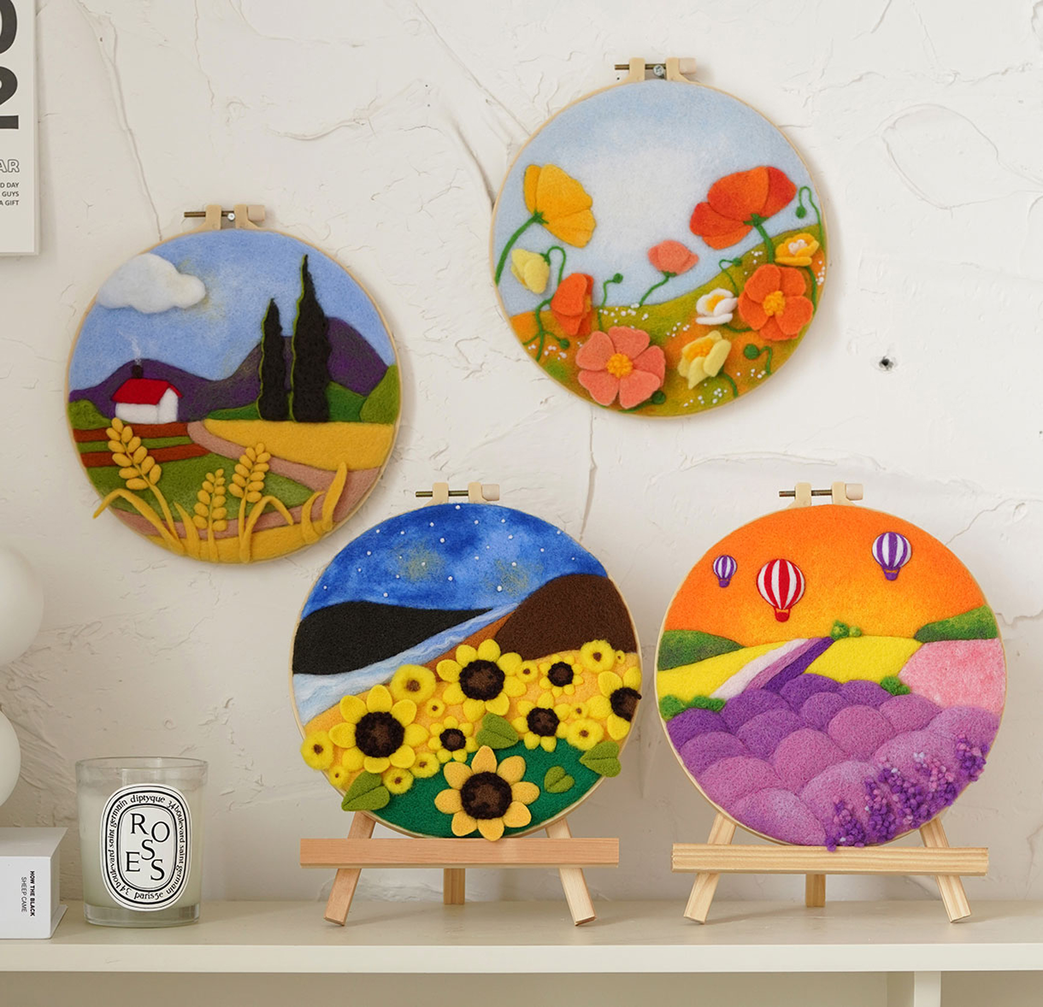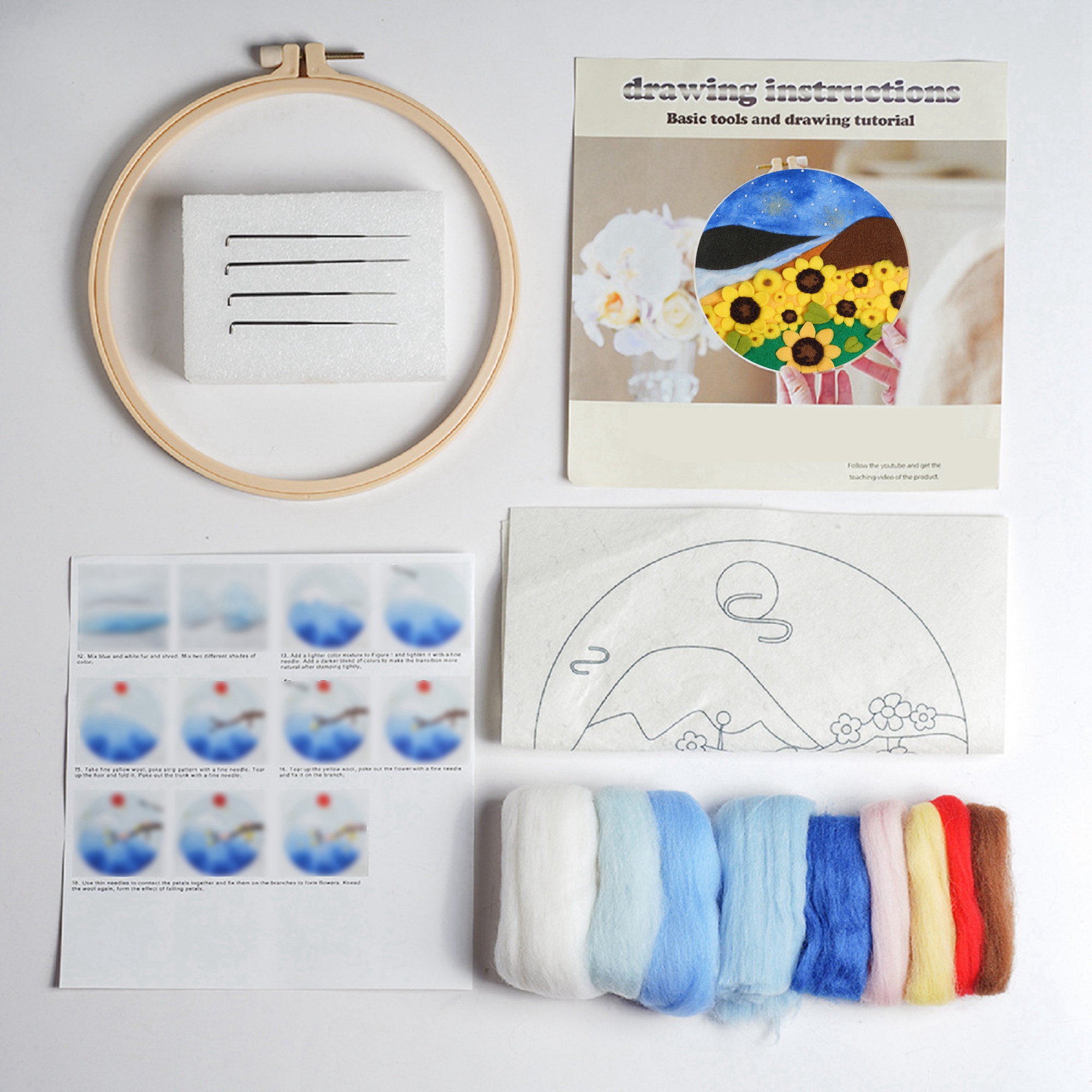 Sunflower Needle Felting Kit Picture Embroidery Hoop 20cm Craft Kit for Mom Full Kit